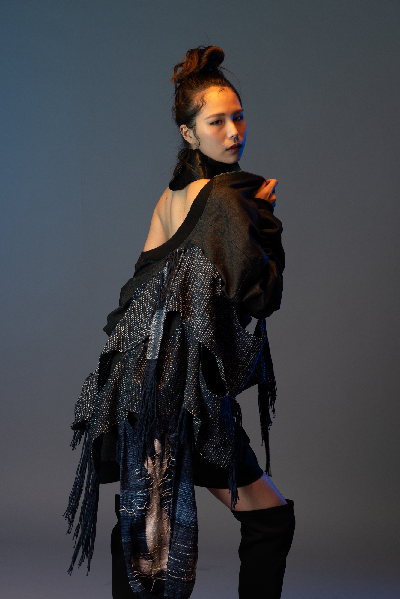 The Zulu Tapestry Collection refines elements of Sibu's Zulu Rust Collection (see NEWS:15/11/23) emphasising the textural qualities of Erna Janine's hand-woven Japanese textiles. Capsule and runway editions were showcased on 23rd & 18th September: see NEWS Event. The fabrics use organic cotton and metallic yarns with Japanese indigo while employing Katazome & discharge dyeing techniques to complement the denim patchworks. This is being developed into the forthcoming Hotaru (firefly in Japanese) branded retail range. We have collaborated again with the Japanese handloom technique specialist Janine @ Freeweaver: freeweaver.co.uk/about-us & instagram.com/freeweaver_studio & instagram.com/cloth_maker/?hl=en & wharf-life.com/tag/erna-janine & with thanks to Nadia for the 'cowboy' twist! @ TLZ Movement instagram.com/tlzmovementclothes.